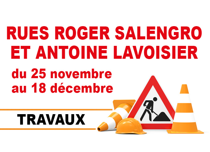 Suite aux travaux de réfection des bordures et reprise d'enrobés qui auront lieu du 25 novembre au 18 décembre 2020 rues Roger Salengro et Antoine Lavoisier,